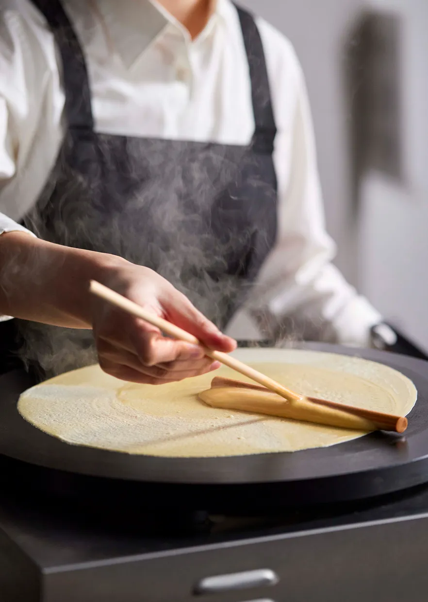 〈Q〉が焼く時間が、人の創造を拓く。Qシリーズは、クレープの現場から生まれた協働ロボットです。