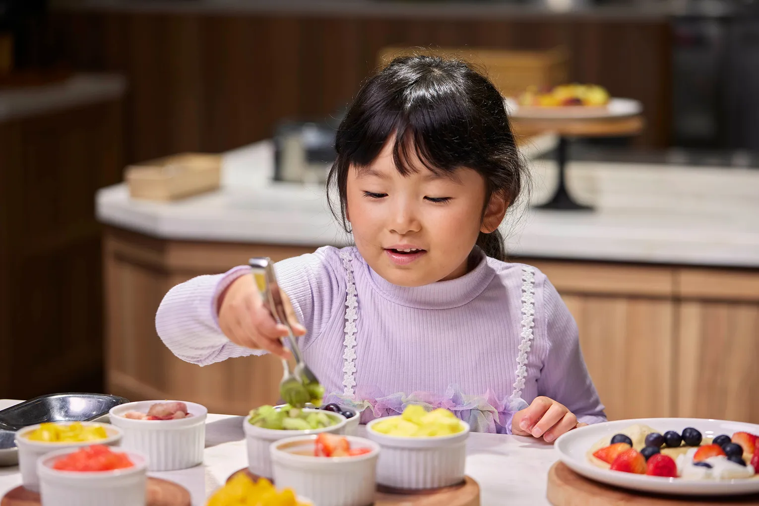 焼き上がった生地には、お客様ご自身で自由にトッピングを。調理のプロセスそのものをエンターテインメントに変える、新しい体験型クレープマシンです。